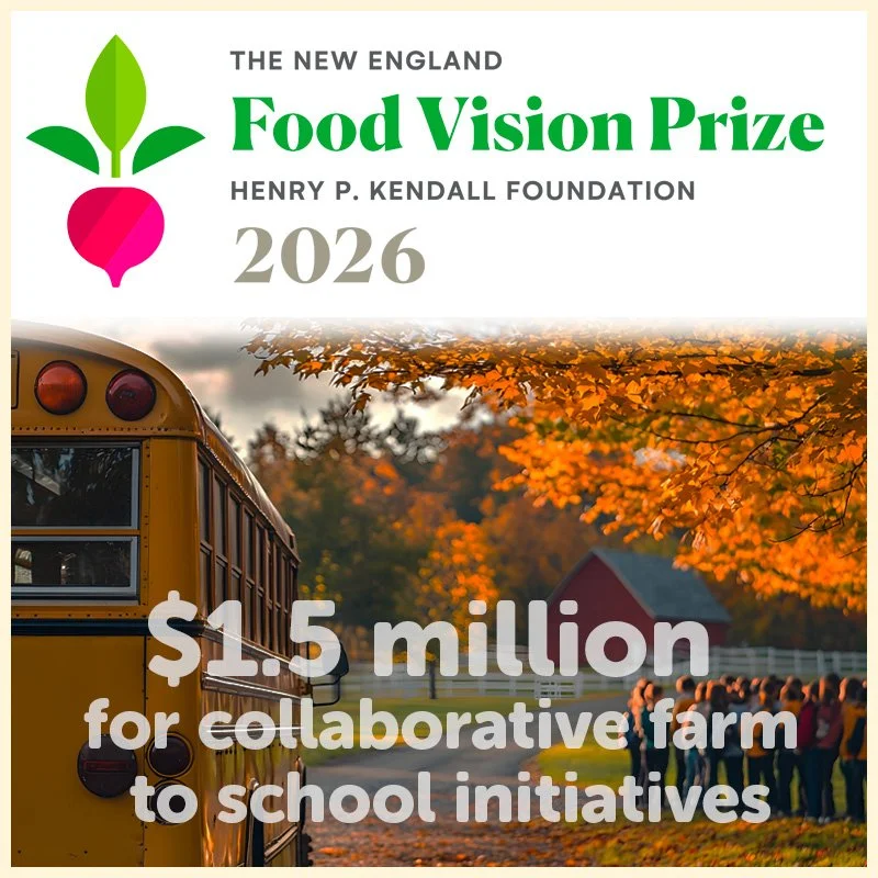 The 2026 New England Food Vision Prize will award up to $1.5 million to collaborative farm to school initiatives and local sourcing efforts across the region. Winning Prizes will increase student access to healthy, locally produced ingredients and build consistent and reliable demand from schools, colleges, and universities.