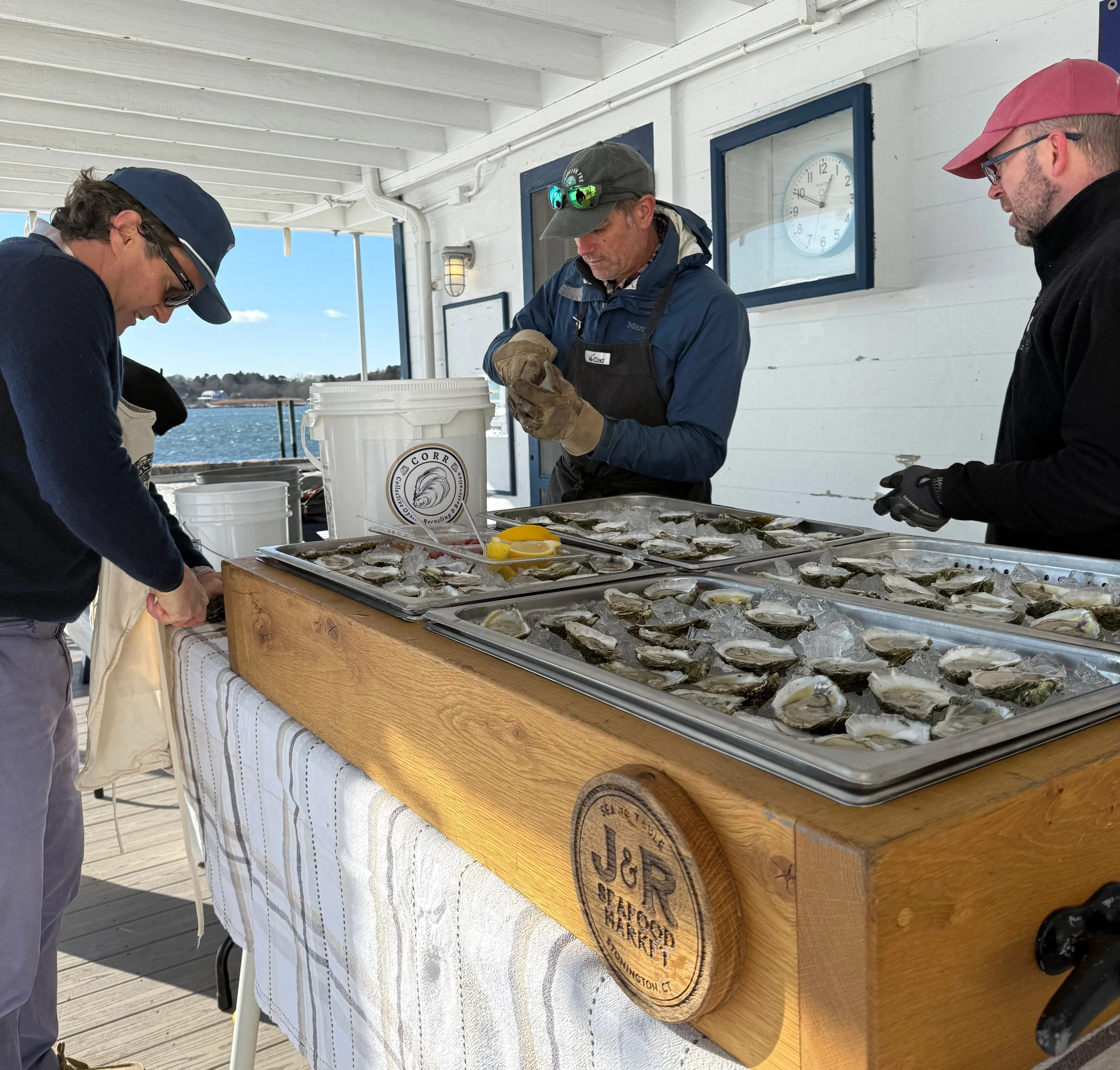 Personal case in point: I’d just started this article when an email came in from a local club asking if I’d help man the oyster shucking table for their annual New Year’s Day bash. I said yes, in part because I knew Stonington Fresh members J&R Seafood and Stonington Farms Shellfish were the suppliers, and because, well, I really like oysters. Tim at CORR asked if I’d like a bucket, and told me where I could borrow one around the back at Oyster Club over the bridge in Mystic. Community at work!
